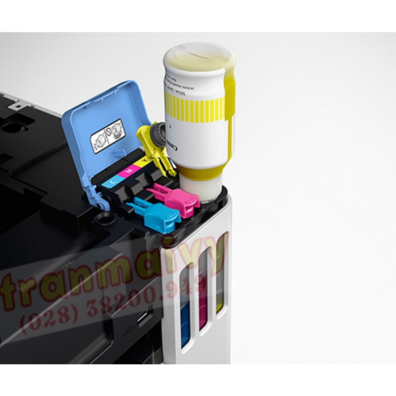Loại mực: Hệ thống bình mực nạp (GI-76: Đen, Cyan, Magenta, Vàng)